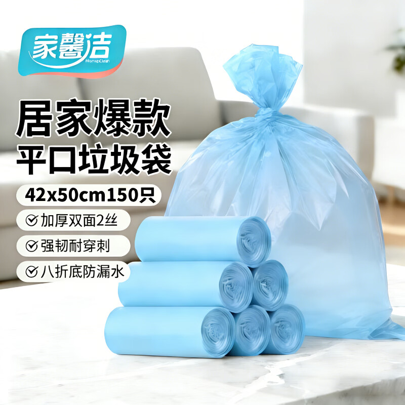 家馨洁抽绳式垃圾袋加厚款45*50cm家用厨房手提式中号办公室 平口42*50cm150只