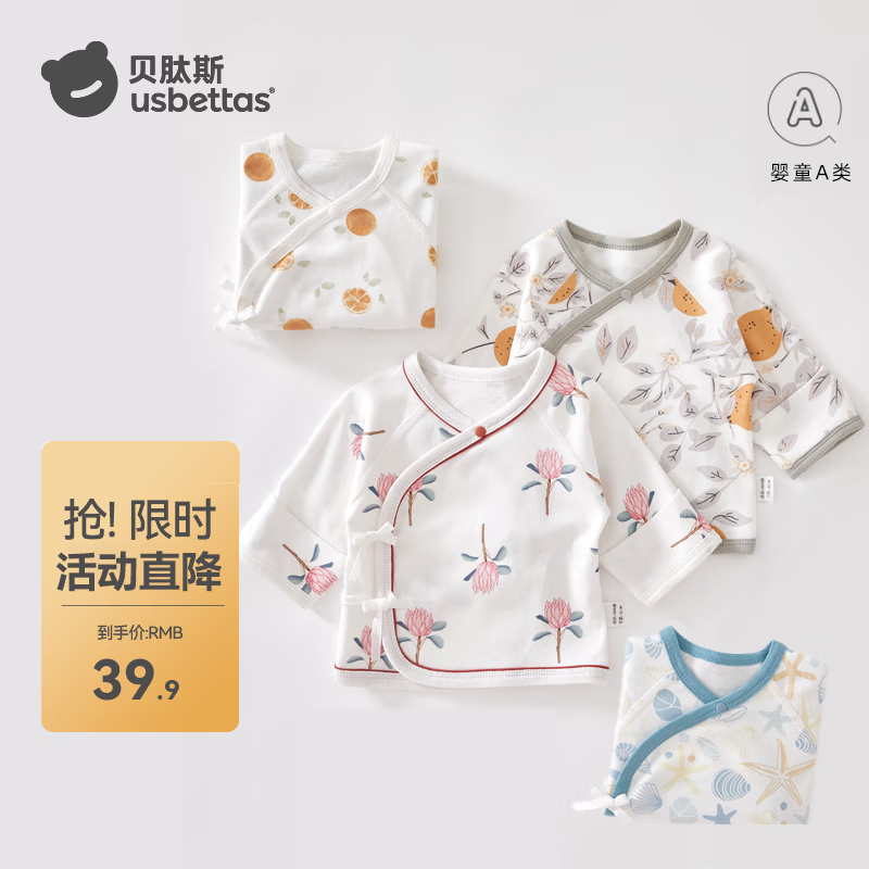 贝肽斯新生儿儿童衣服春秋新款透气纯棉宝宝半背衣初生儿护肚上衣睡衣 小柑橘【透气舒适】 52 cm