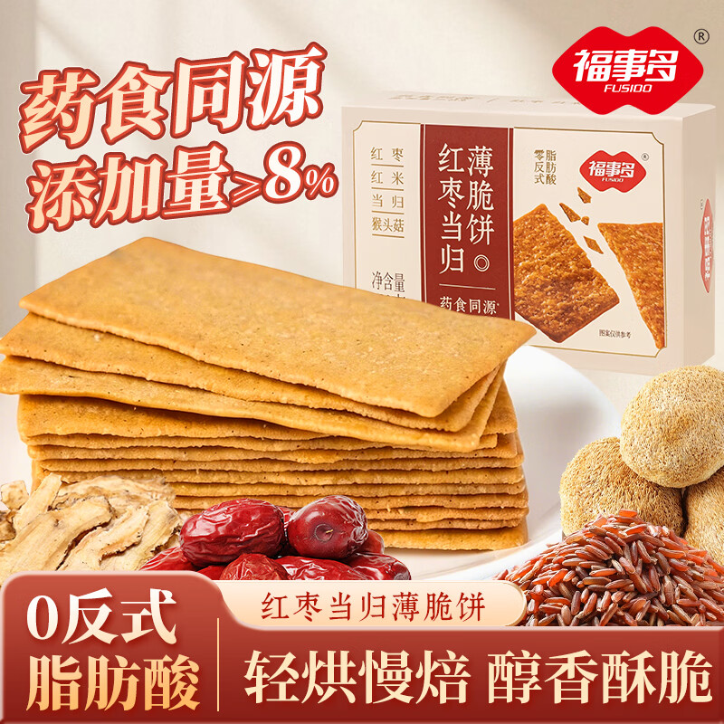福事多休闲零食曲奇饼干营养代餐春节送礼年货礼品送长辈礼盒装 红枣当归薄脆280g