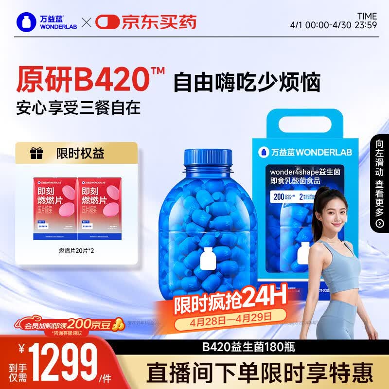 万益蓝WonderLab B420益生菌成人b420肚子菌男女瘦大胖桶180瓶