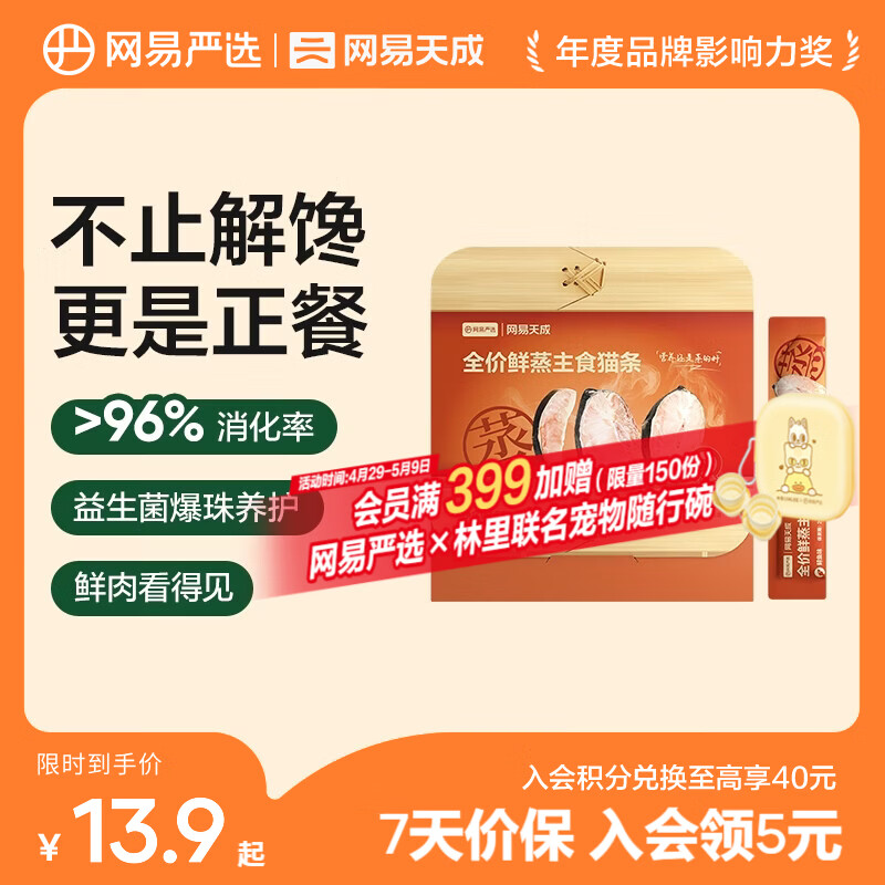 网易严选全价鲜蒸主食猫条 主食级爆珠猫条 营养湿粮成猫幼猫通用 鲟鱼味 6支*1袋