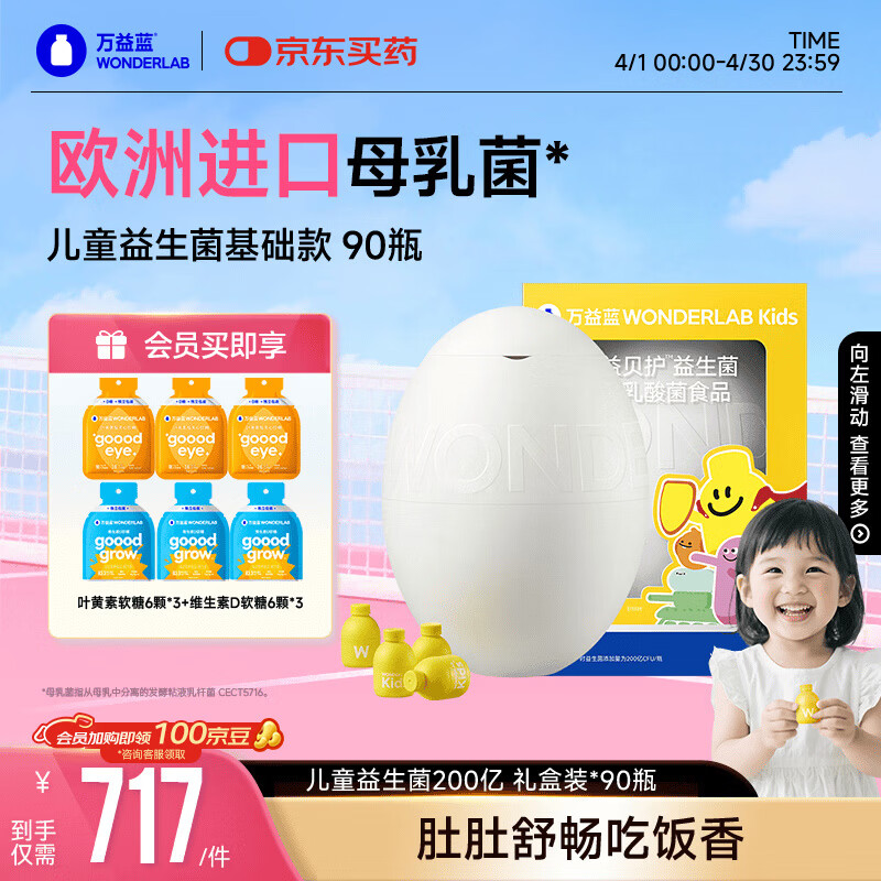 万益蓝(WONDERLAB)儿童益生菌小黄瓶双歧杆奇益蛋婴幼儿200亿基础款1-6岁 90瓶