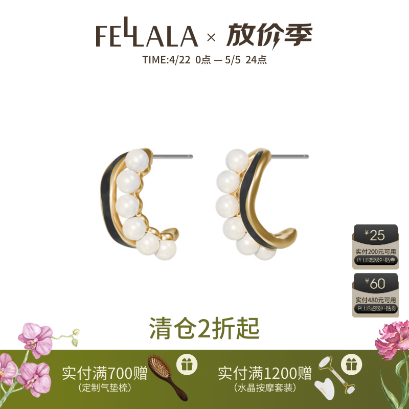 翡拉拉(fellala)「简奢online」仿珍珠耳钉C圈复古耳环高级感轻奢耳饰节日生日礼 商场同款 一对