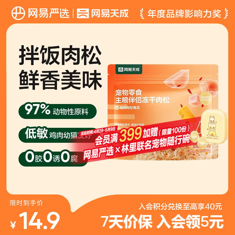 网易严选主粮伴侣冻干肉松 肉香浓郁 猫咪主粮搭配营养增肥发腮 鸡肉枸杞南瓜 40g