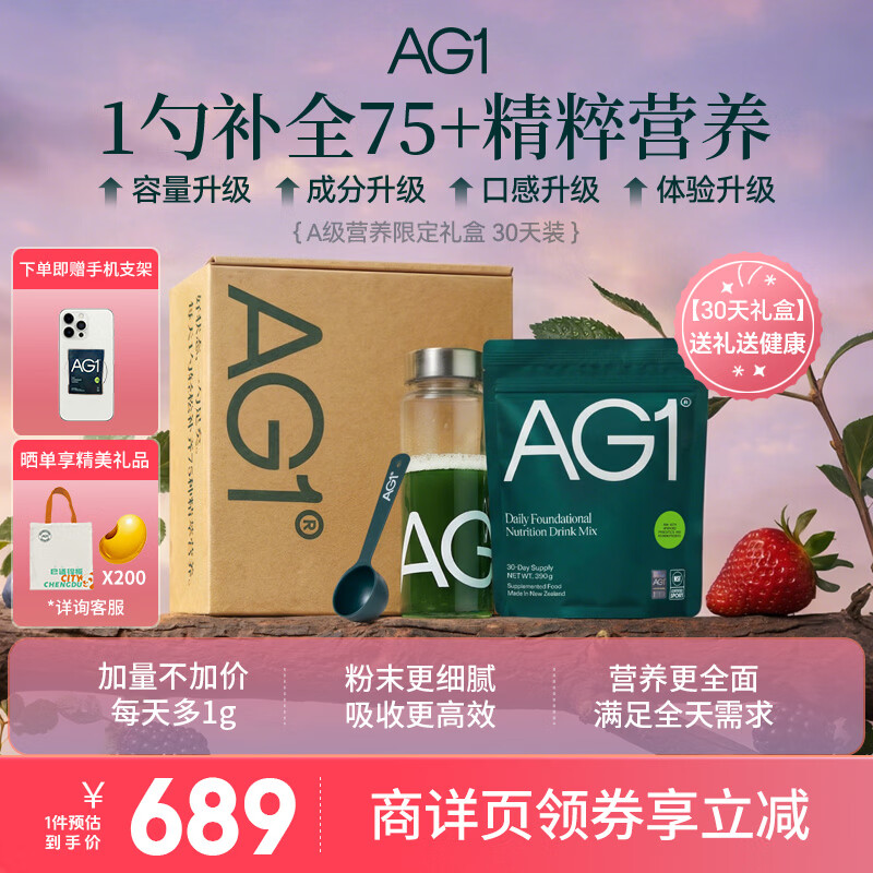 Athletic Greens新西兰ag小绿粉AG1营养复合维生素益生菌辅酶q10送礼38女神节礼盒 【新升级30天礼盒装】 390g*1袋 /礼盒