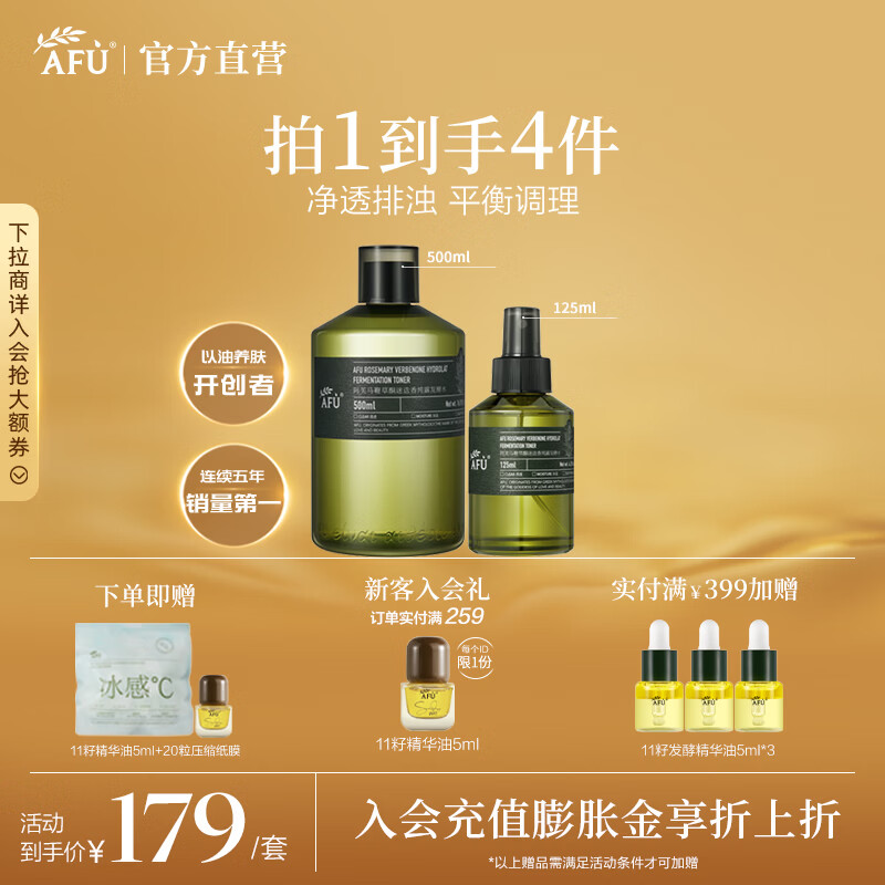 阿芙(AFU)马鞭草酮迷迭香纯露发酵水平衡调理改善闭口爽肤水新年送礼物 套组625ml
