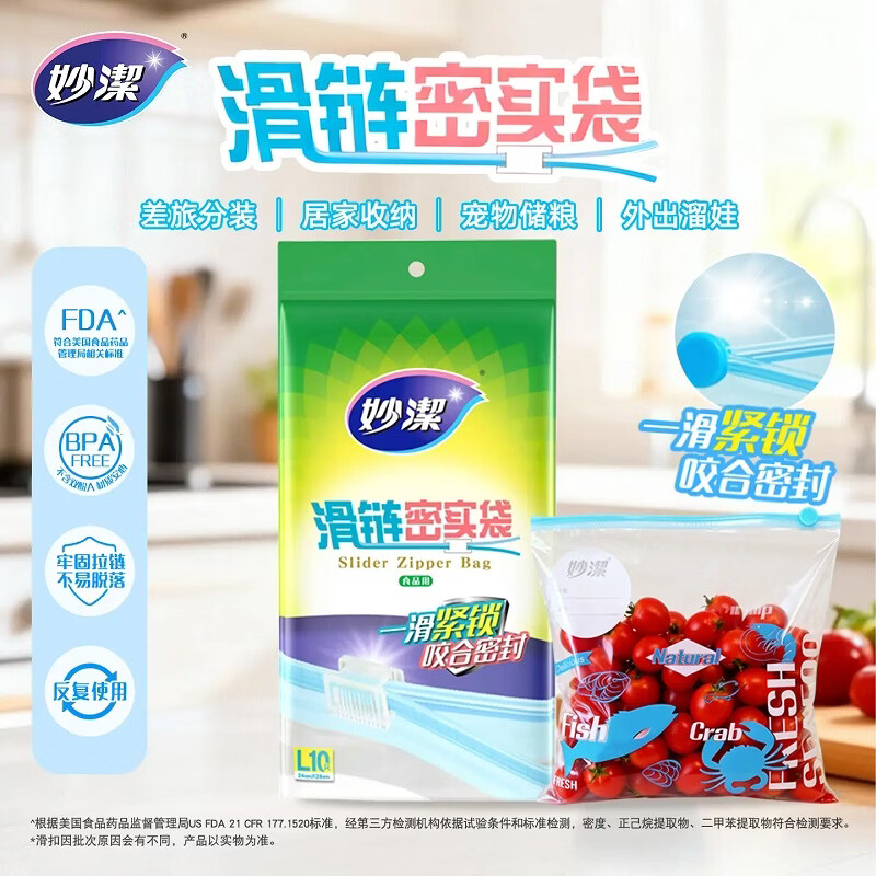 妙洁 滑链密实袋 解冻密封袋保鲜袋食品级袋子 大号*2袋(共20只)