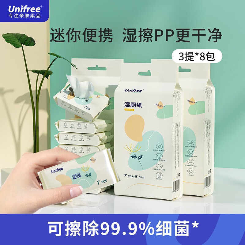 unifree湿厕纸 如厕擦拭清洁湿巾 抽取式男女通用擦屁屁专用 7抽*24包