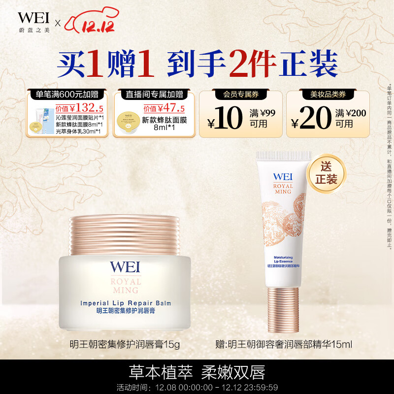 蔚蓝之美WEI明王朝密集修护润唇膏15g 滋润保湿补水防干裂唇部护唇膏男女