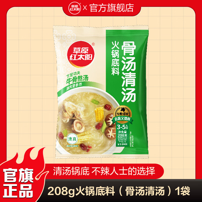 草原红太阳火锅底料208g麻辣清油火锅料黄番茄骨汤菌汤微辣火锅底料 208g骨汤清汤*3袋