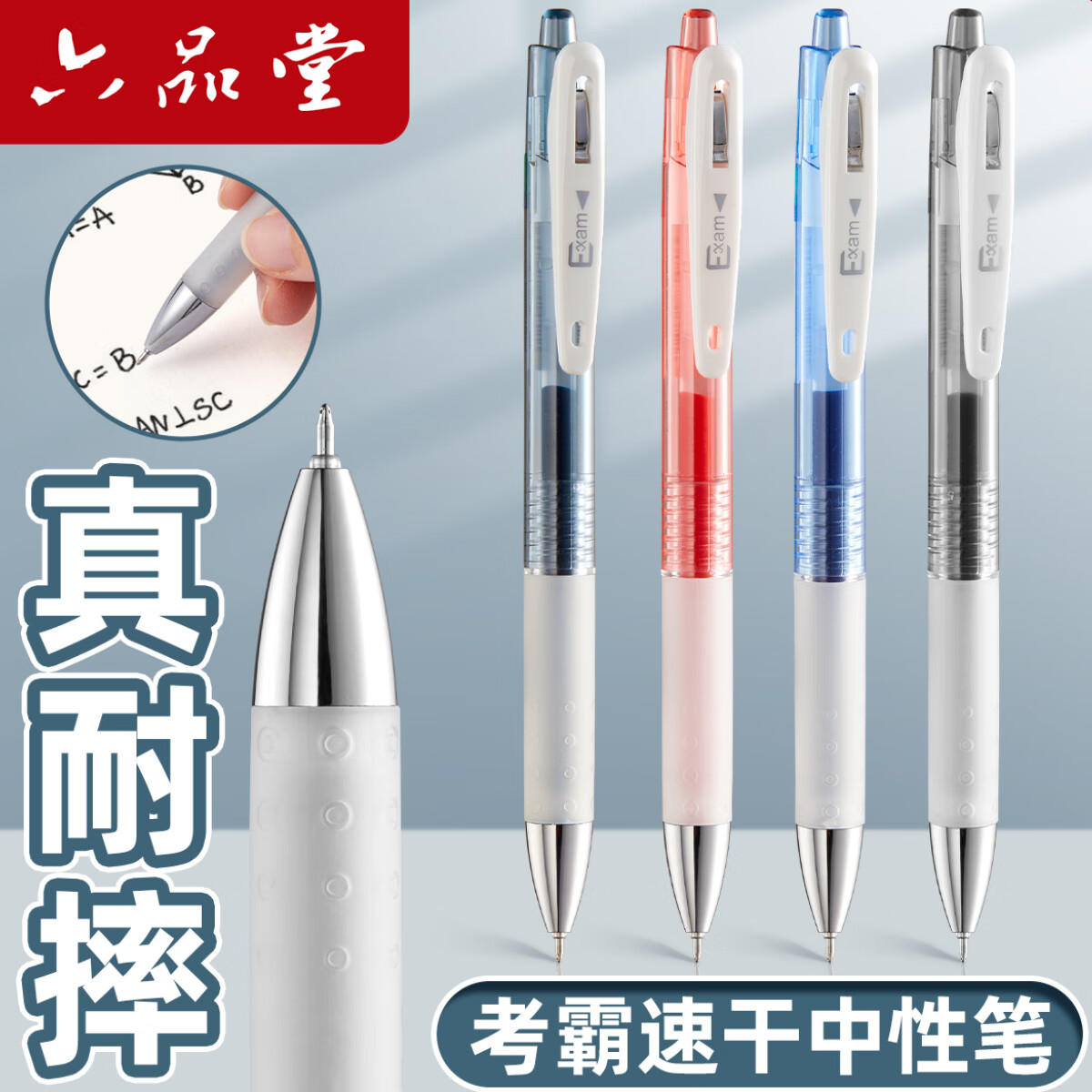 六品堂按动中性笔速干顺滑考霸刷题黑笔初中生专用考试书写0.5按压式水笔芯碳素红笔 考霸中性笔-黑色*3支
