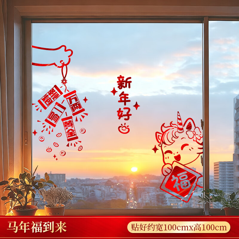 千棵树2026元旦新年装饰蛇年福字窗花门贴春节过年橱窗玻璃贴纸窗户 马年福到来 升级金属质感拉丝金材质