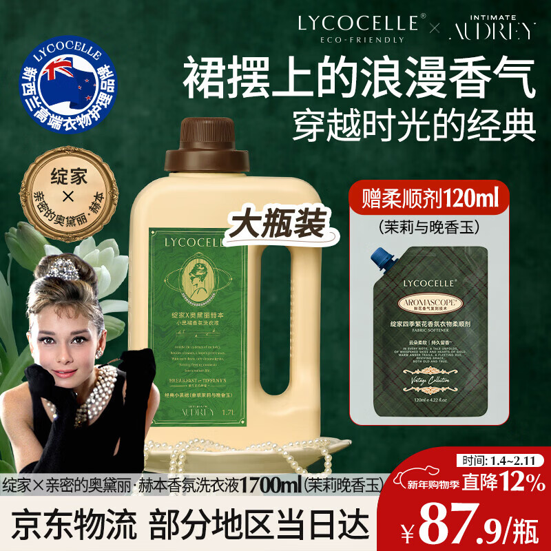 绽家X亲密的奥黛丽·赫本联名款香氛洗衣液家用持久留香护色除菌除螨 【茉莉与晚香玉】 1.7L*1瓶