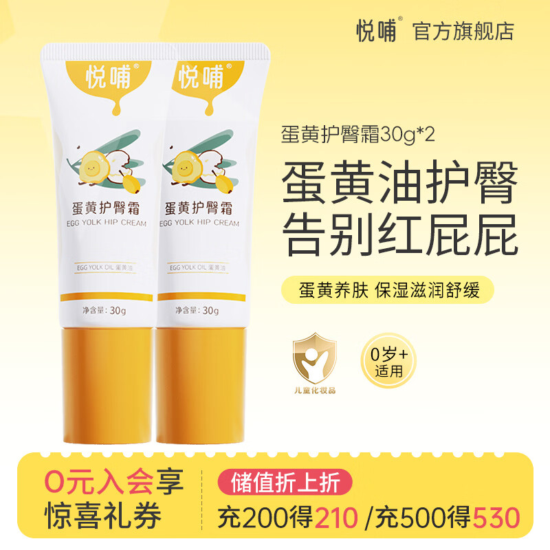 悦哺婴儿护臀霜 宝宝蛋黄油护臀膏PP膏屁屁乐膏预防红屁屁新生儿 【商超同款】护臀霜 30g*2支