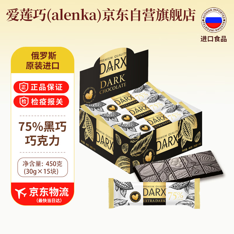 DARX75% 黑巧克力30g*15 俄罗斯进口巧克力 爱莲巧 休闲零食 下午茶