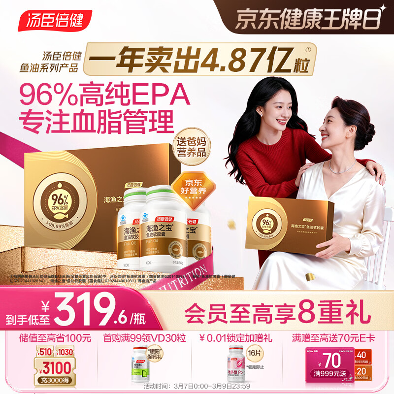 汤臣倍健96%高纯度epa鱼油胶囊*3瓶 深海鱼油 omega3鱼油辅助降血脂