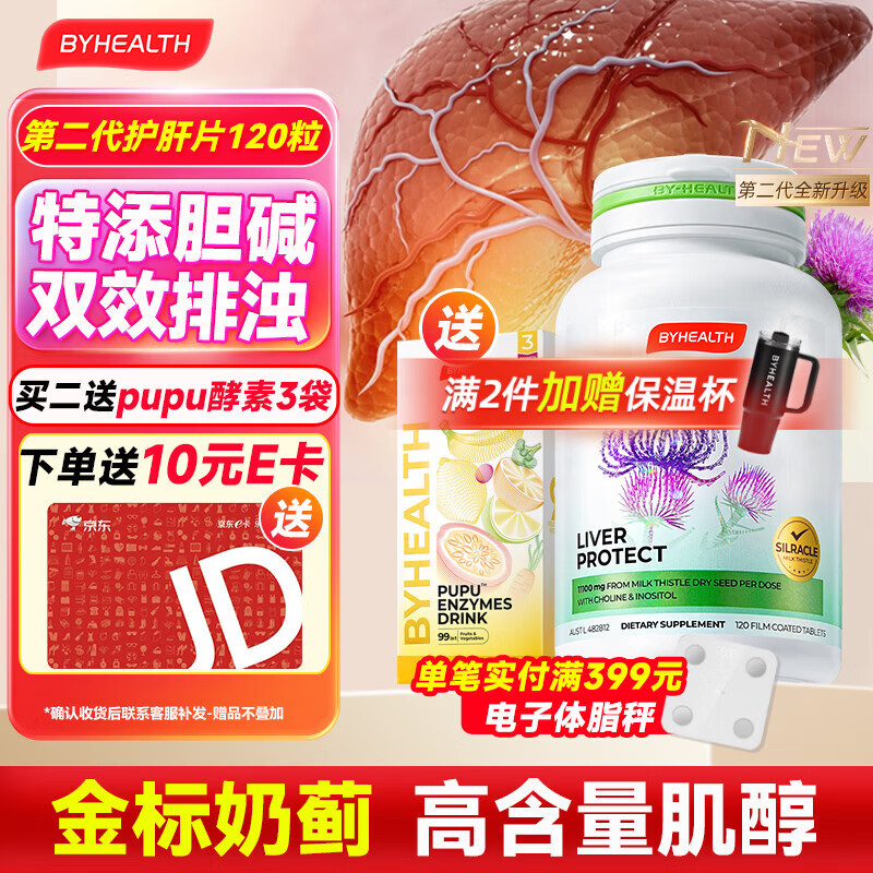 BYHEALTH第二代护肝片夜肝升级奶蓟草水飞蓟宾熬夜养肝净肝脂肪肝肌醇胆碱 第二代进阶升级版120粒【8周改善指标】