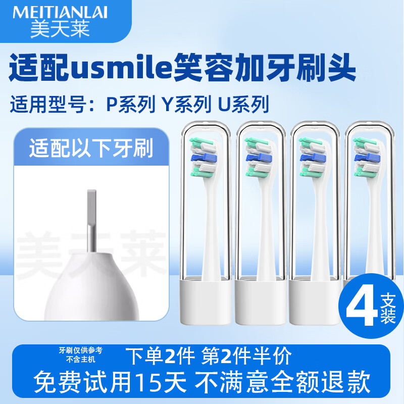 美天莱适配usmile笑容加电动牙刷头P10/P20pro/Y30/Y1/Y1S/Y10/U1/U2/U3S/P1/P3/U4替换通用 4支 白色专业款(独立单管包装)
