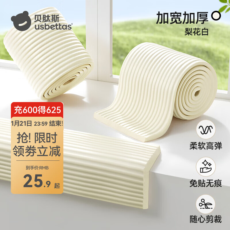 贝肽斯宝宝防撞条婴儿墙角包边软包加厚桌角防磕碰保护条儿童防撞护角 梨花白【厚1.2cm/宽15cm】加宽加厚 2米 2米【NBR升级-免贴无痕】