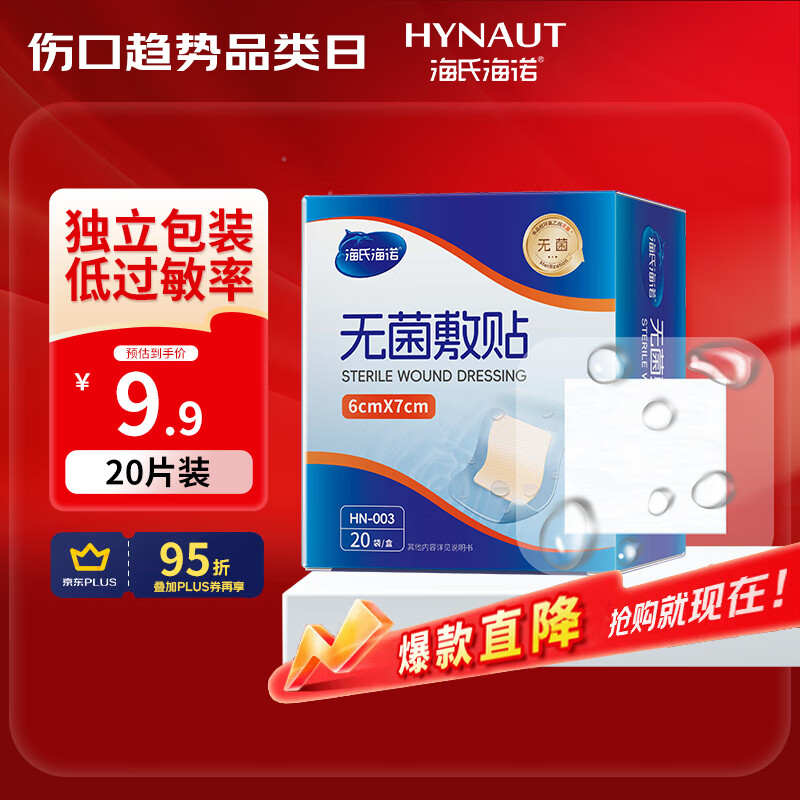 海氏海诺 无菌防水敷贴医用 6*7cm*20片 伤口贴大号创可贴防水肚脐贴洗澡