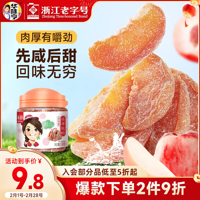 华味亨 盐津桃肉140g/罐 休闲零食蜜饯果干桃制品酸甜咸小吃 办公零食