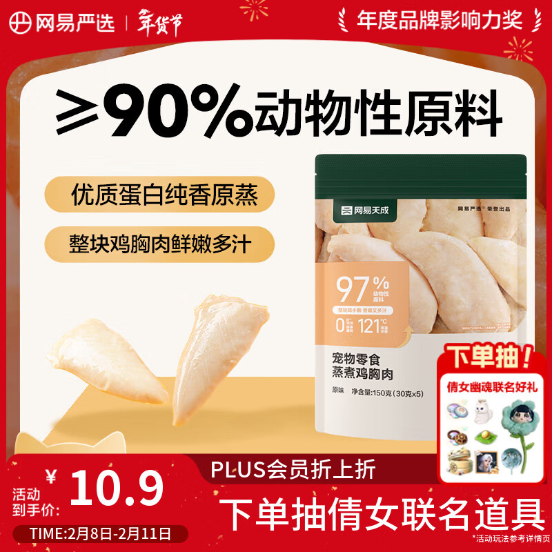 网易严选蒸煮鸡胸肉猫零食成猫幼猫通用 原味30g*5袋