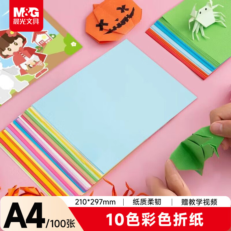 晨光(M&G)益智diy手工彩纸A4彩色折纸专用纸儿童剪纸画画纸千纸鹤纸飞机 10色/100页赠教学视频