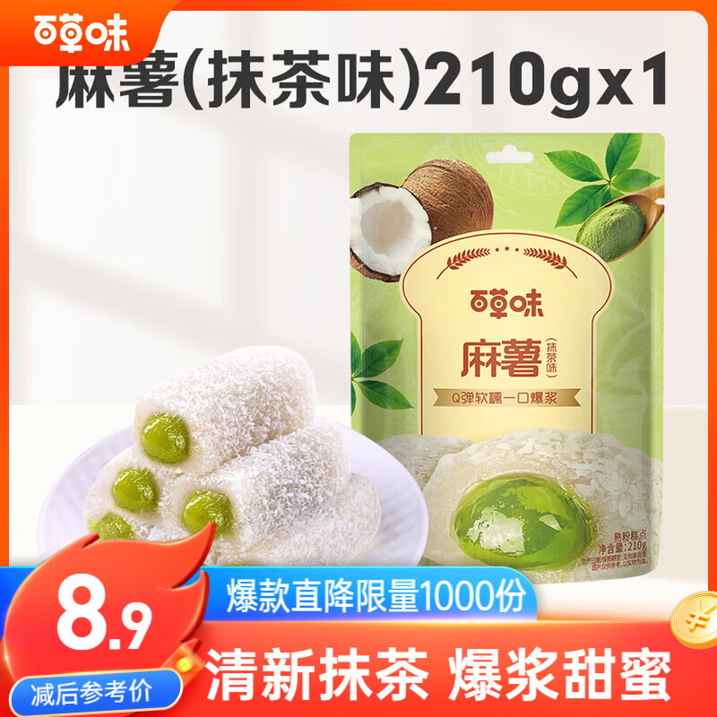 百草味夹心麻薯抹茶味210g/袋 点心糕点休闲零食特产办公室糯米糍早餐