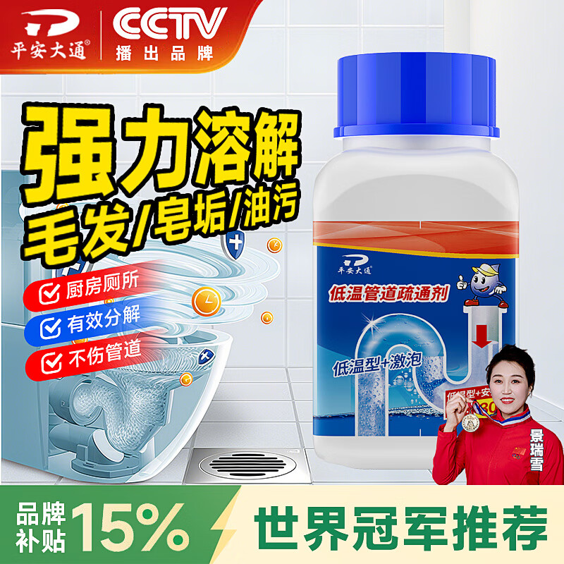 平安大通 强力下水道管道疏通剂通厨房水池洗脸池油污头发堵塞疏通液300g