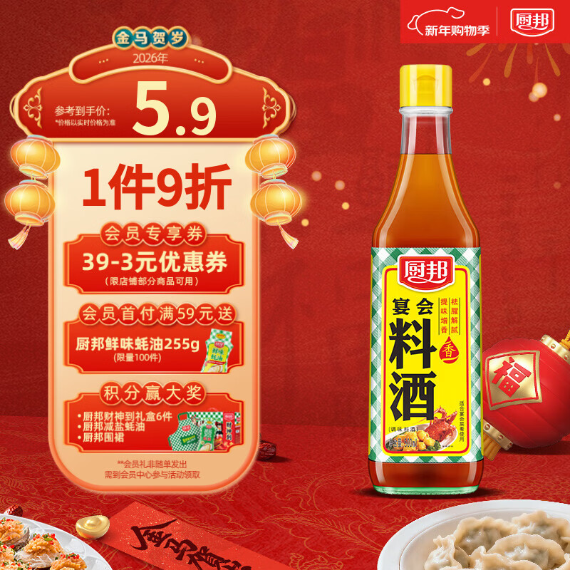 厨邦10度 调味料酒500ml 宴会级料酒 精致去腥增香 厨师烹饪香料调味