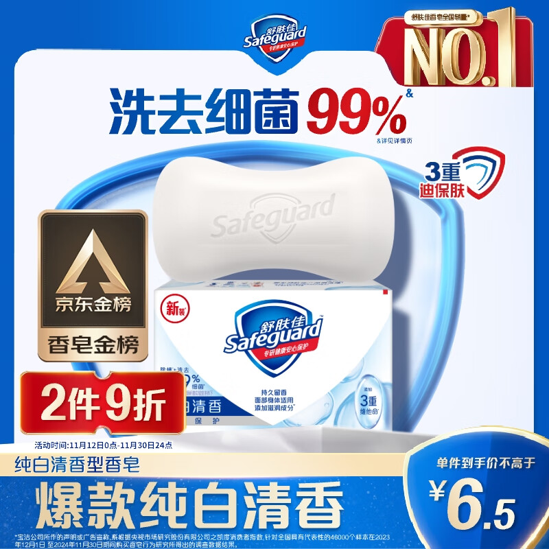 舒肤佳香皂 纯白清香115g 99.9%除菌 洗澡沐浴皂肥皂 新旧包装随机