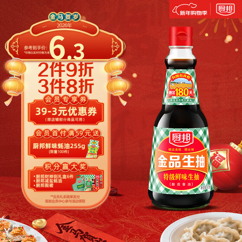厨邦酱油 金品系列 生抽 酱油【特级黄豆酱油】410ml 酿造酱油 调味品