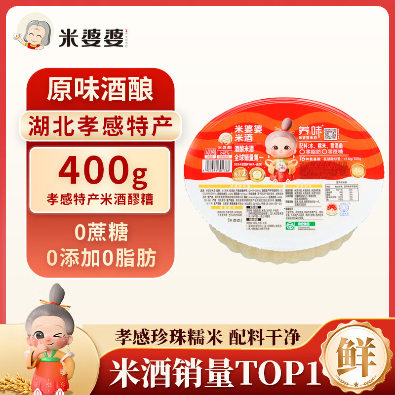 米婆婆 醪糟米酒400g*1盒酒酿酒糟0添加孝感糯米酒汁甜酒月子湖北特产