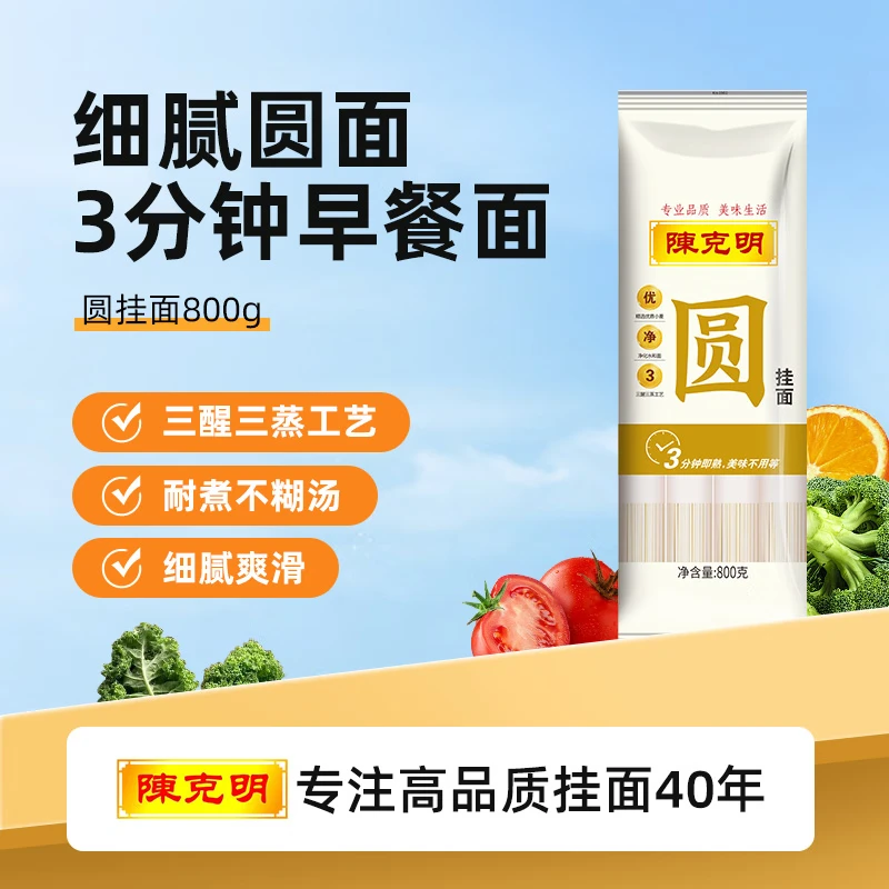 陈克明面条 圆挂面细面圆面汤面劲道速食面800g 营养早餐面