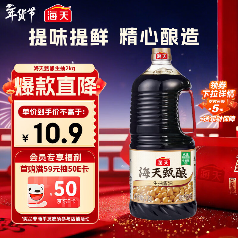 海天 甄酿生抽酱油2kg【酿造酱油】经典系列 点蘸提鲜凉拌