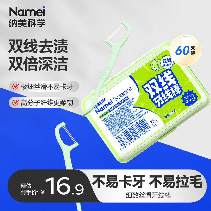 纳美(Namei)双线超细牙线棒剔牙签牙线清洁齿缝家庭装便捷装1盒*60支
