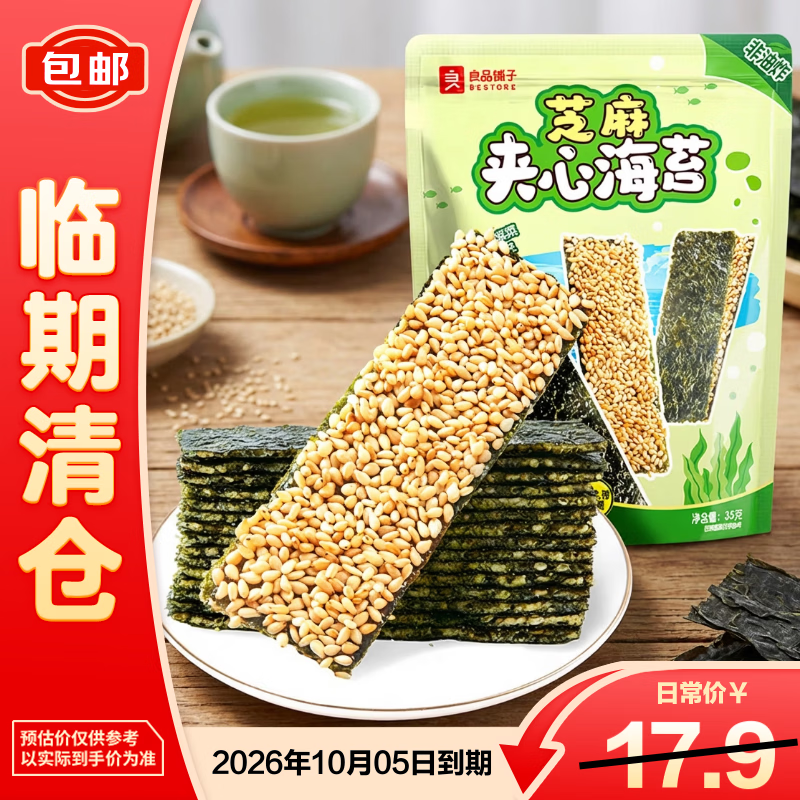 良品铺子芝麻夹心海苔儿童食海苔夹心脆35g 2026年10月13日到期