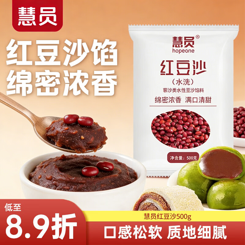 慧员(hopeone)水洗红豆沙500g 低糖家用青团蛋黄酥粽子汤圆豆沙包月饼烘焙馅料