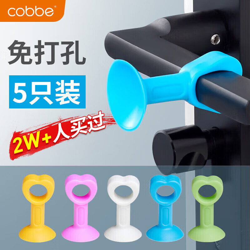 卡贝门把手防撞神器免打孔门吸硅胶门碰墙吸卫生间门缓冲5只装