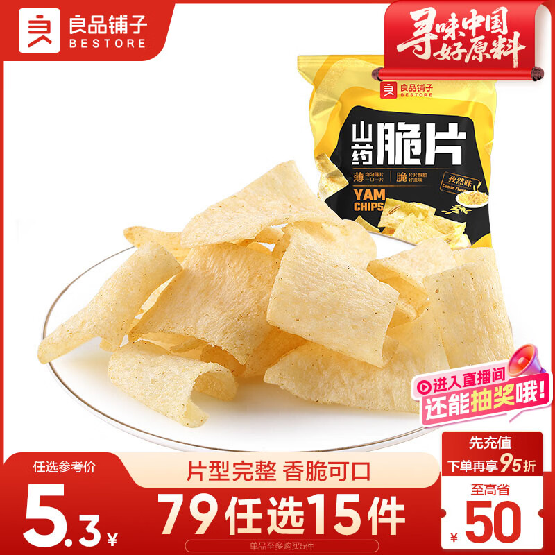良品铺子 山药脆片孜然味 薯片山药片 膨化食品 休闲 童年零食小吃70g