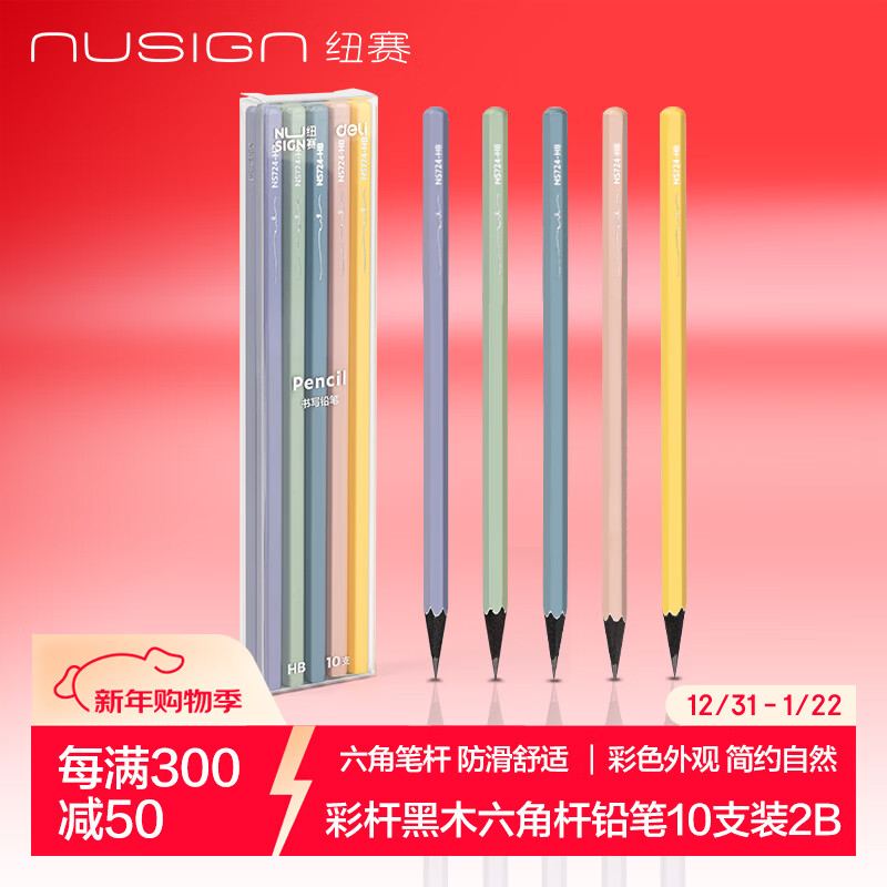 纽赛(NUSIGN)彩色笔杆铅笔学生考试专用书写练字儿童绘画美术素描 10支NS724-HB【热门商品】得力旗下高端品牌