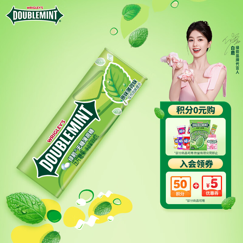 绿箭无糖薄荷糖薄荷味23.8g约35粒/瓶 清新口气 休闲零食 白鹿同款