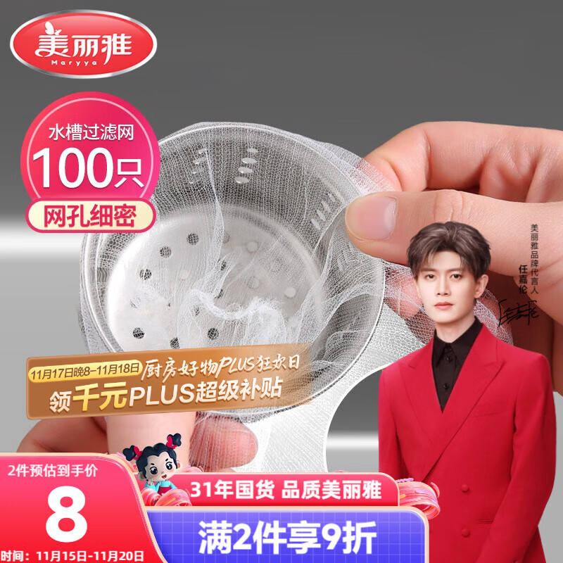 美丽雅水槽过滤网100只一次性 厨房下水道水池地漏筛网