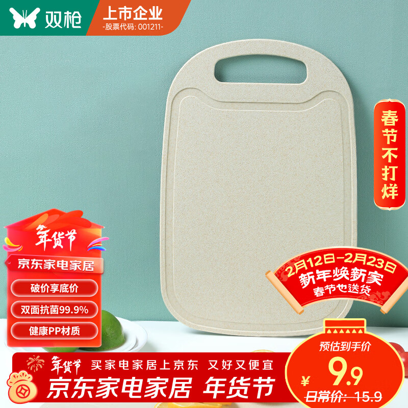 双枪砧板儿童辅食板塑料切菜板防霉水果板刀板32.7*21.8*0.4cm