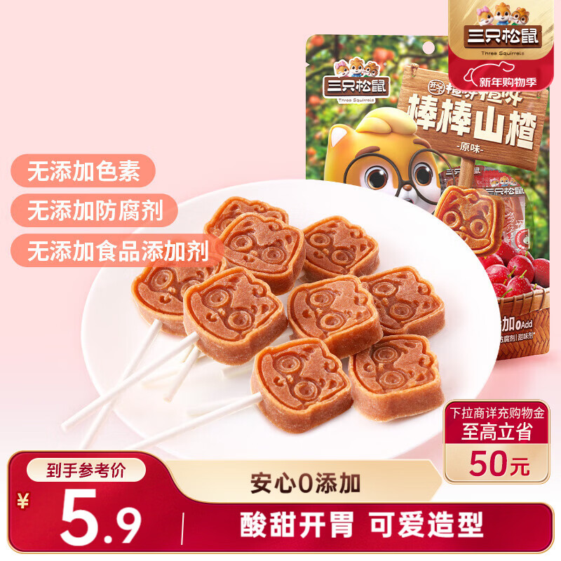 三只松鼠棒棒山楂108g约10支蜜饯果干果糕棒棒糖儿童休闲零食独立包装