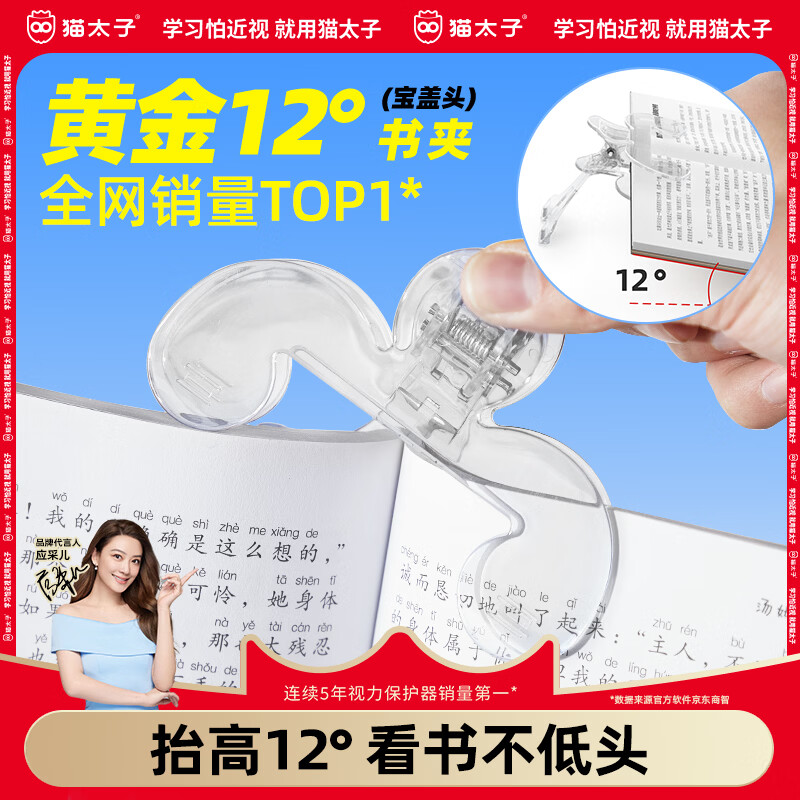 猫太子小学生宝盖头书夹儿童桌面阅读架书架12度透明实用便签夹固定器书本夹防书翻页收纳夹子文具多功能