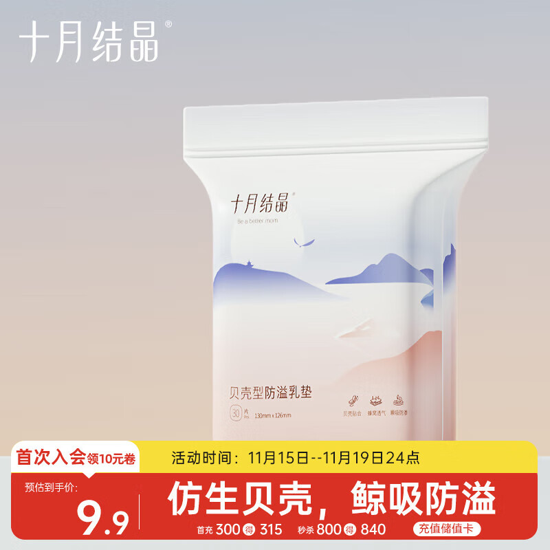 十月结晶一次性防溢乳垫3D立体乳贴哺乳期防漏贝壳款30片