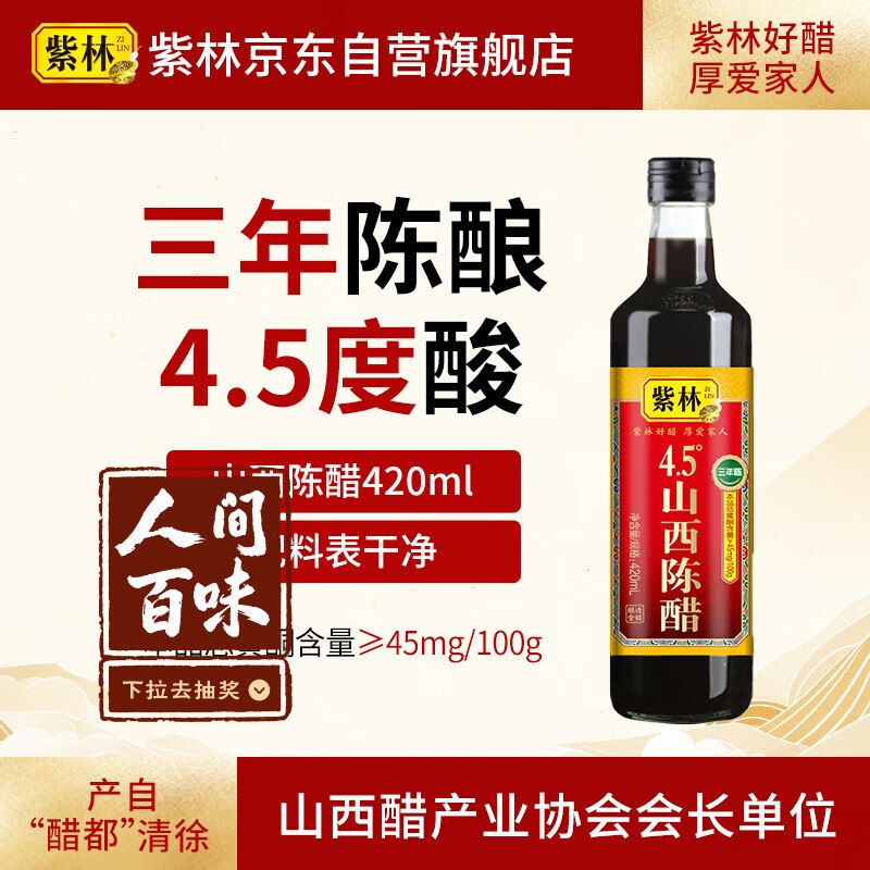 紫林 醋 4.5度山西陈醋420ml 零添加 纯粮酿造食醋 0添加 山西特产