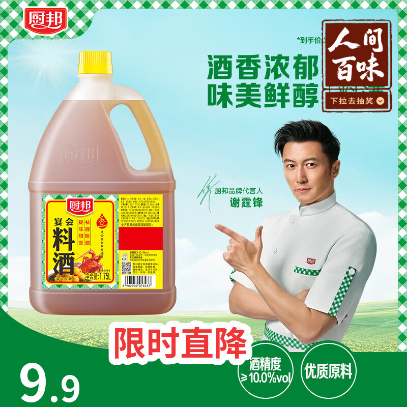 厨邦10度 调味料酒1.75L 去腥解腻 厨师宴会级精致 家庭商用实惠量贩
