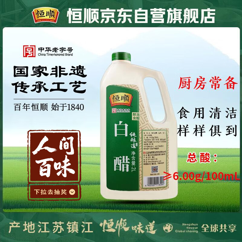 恒顺白醋 纯酿造 4度 2L 北固山白醋 清洁除垢多用途